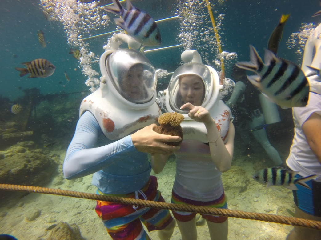 고요한 바다 속 물고기들과 예쁜 모래사장, 그리고 한적한 인파까지—