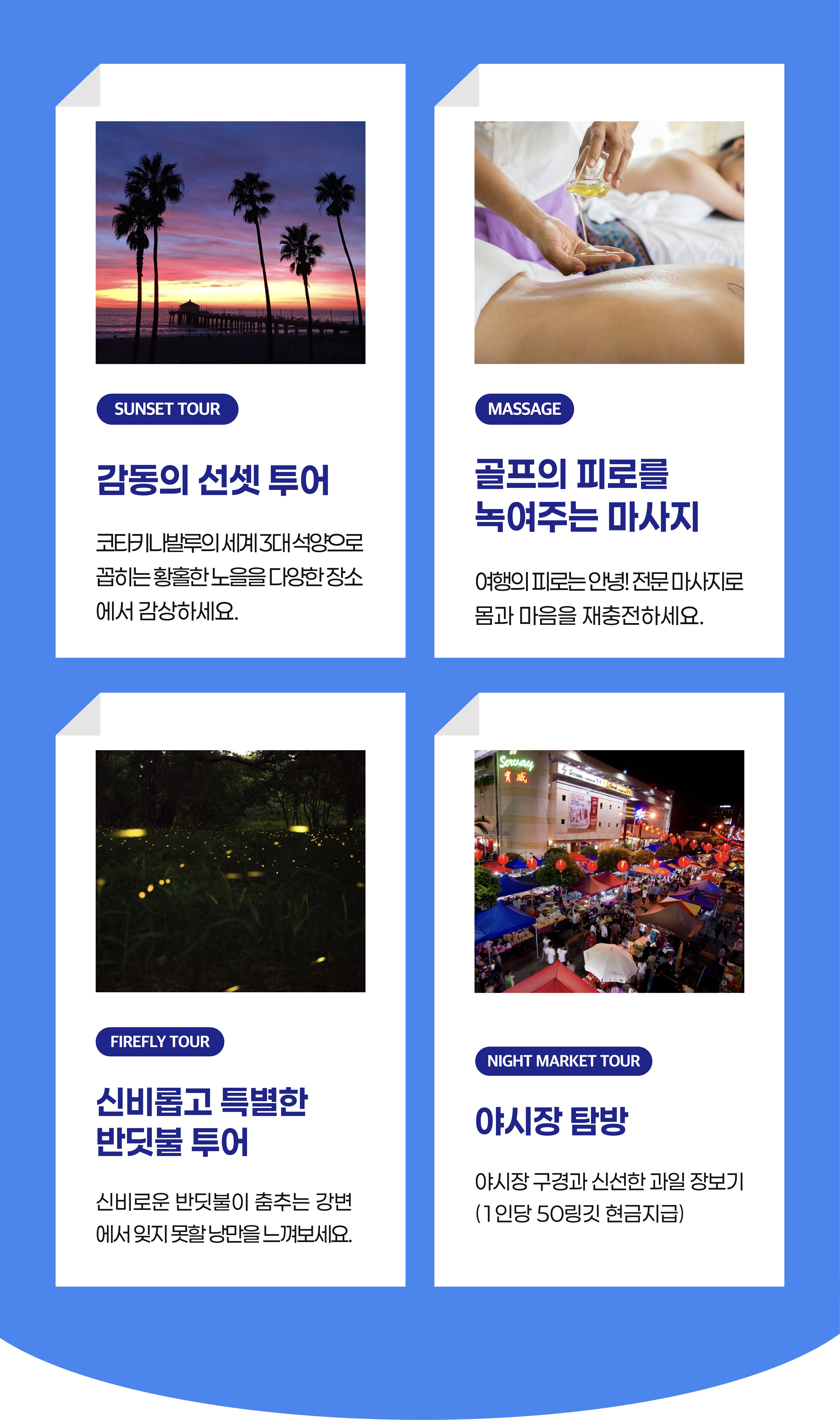 ●특징: 해안선과 열대 경관을 배경으로 한 챔피언십 코스. 아름다운 석양을 감상하며 라운딩 가능.